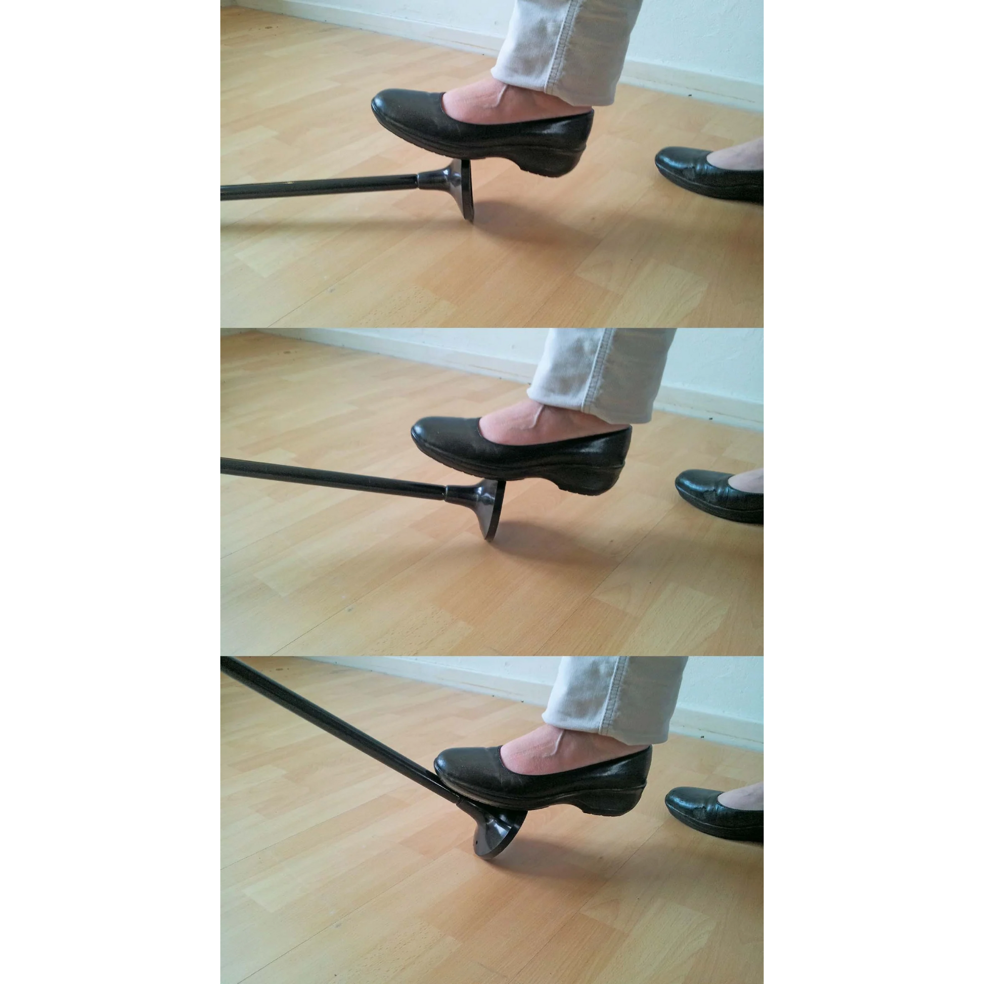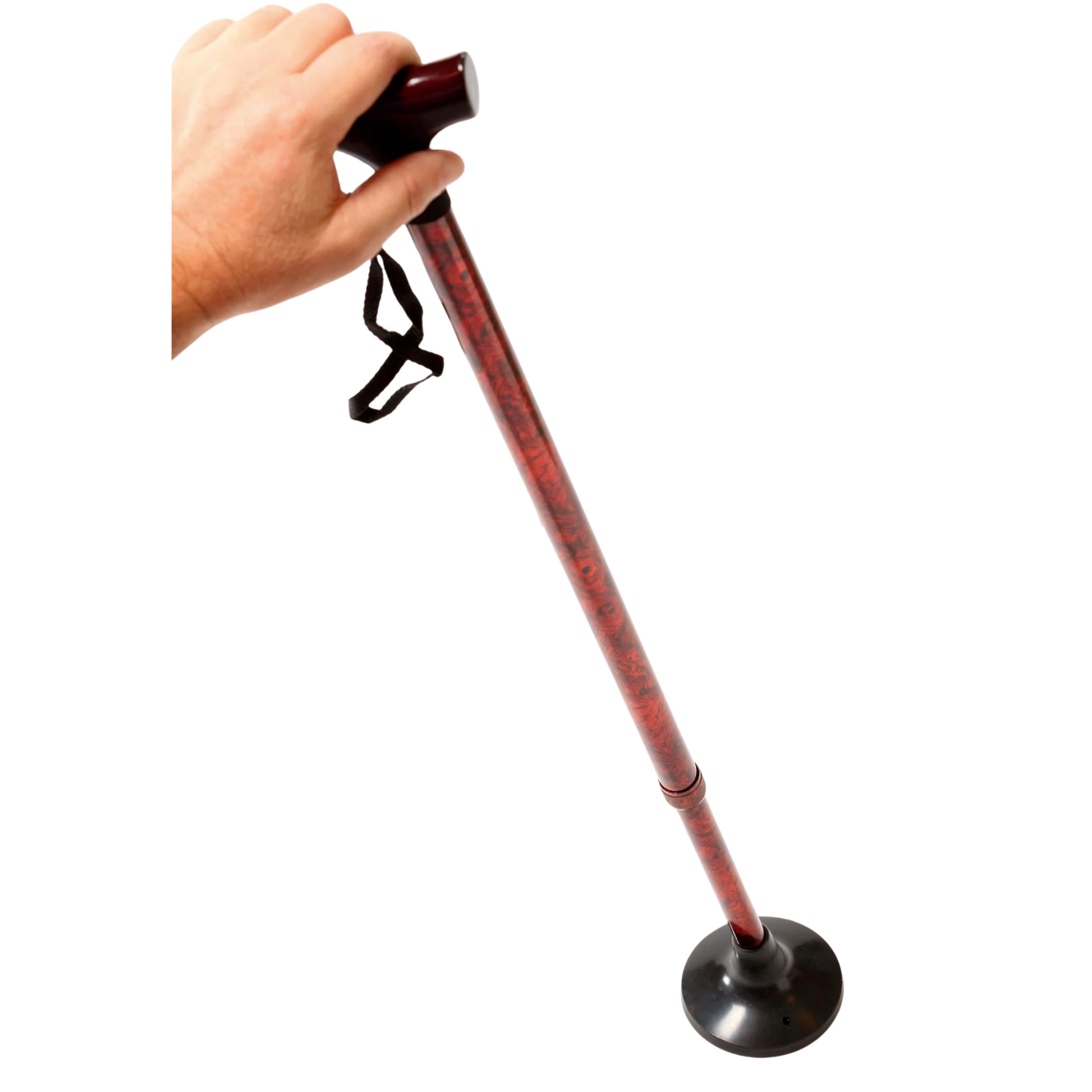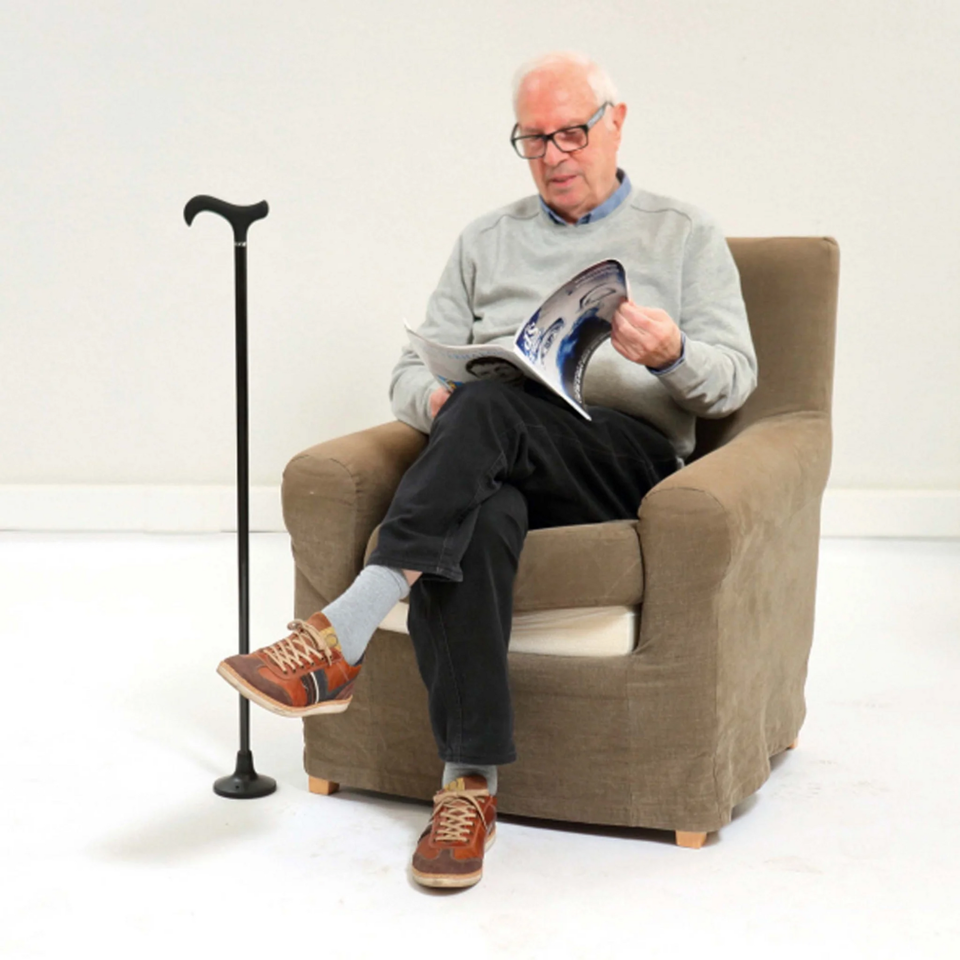 No need to place the cane against a support, it stands up on its own.