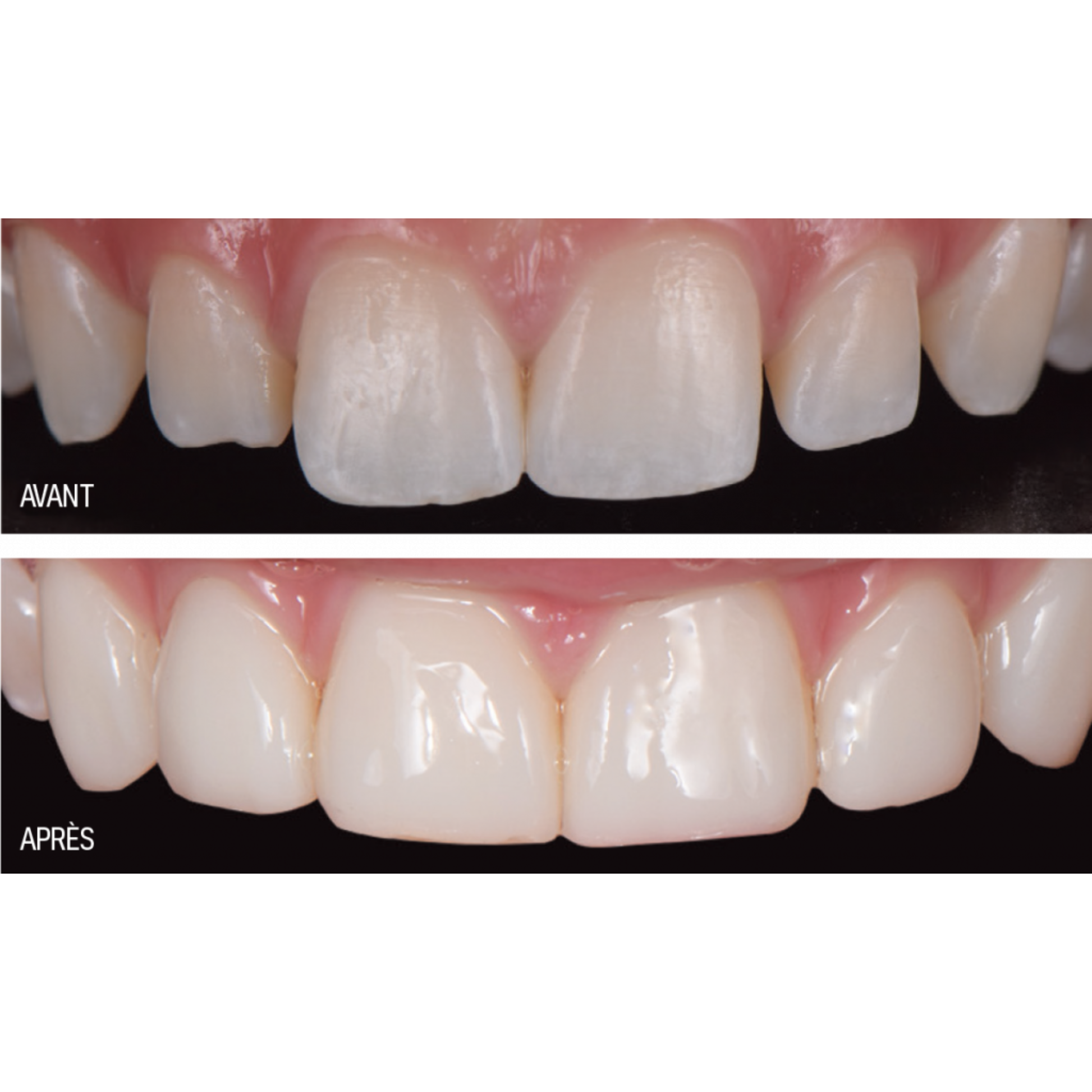3. Technique d’automordançage: Appliquer l’adhésif Zipbond Universal (SDI Limited) selon le mode d’emploi, sécher légèrement pendant 5 secondes et photopolymériser pendant 10 secondes.