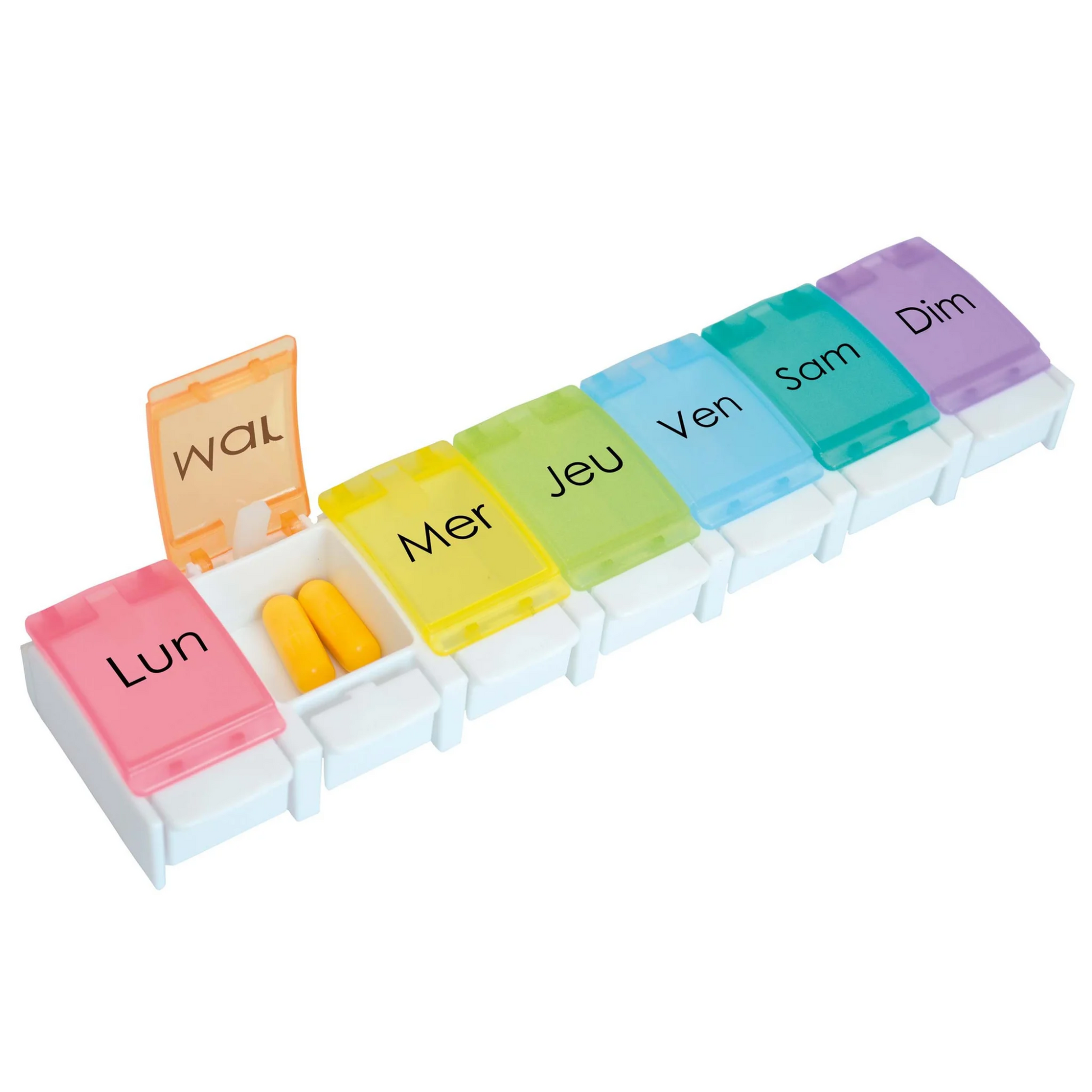 Pilulier hebdomadaire avec 1 compartiment par jour.